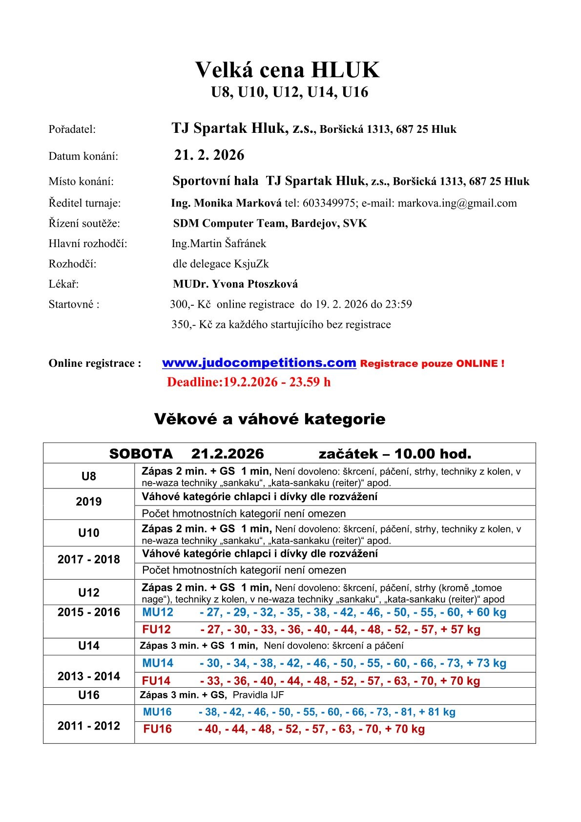 Nominovaní závodníci se přihlašují elektronicky ZDE a to nejpozději do 10. 2. 2026 do 16:00 hod. Nepřihlášení závodníci nebudou mít možnost startu.
