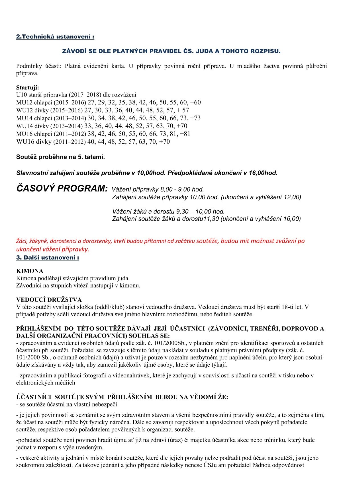 Závodníci se přihlašují elektronicky ZDE a to nejpozději do čtvrtka 12. 3. 2026 do 20:00 hod. Nepřihlášení závodníci nebudou mít možnost startu.