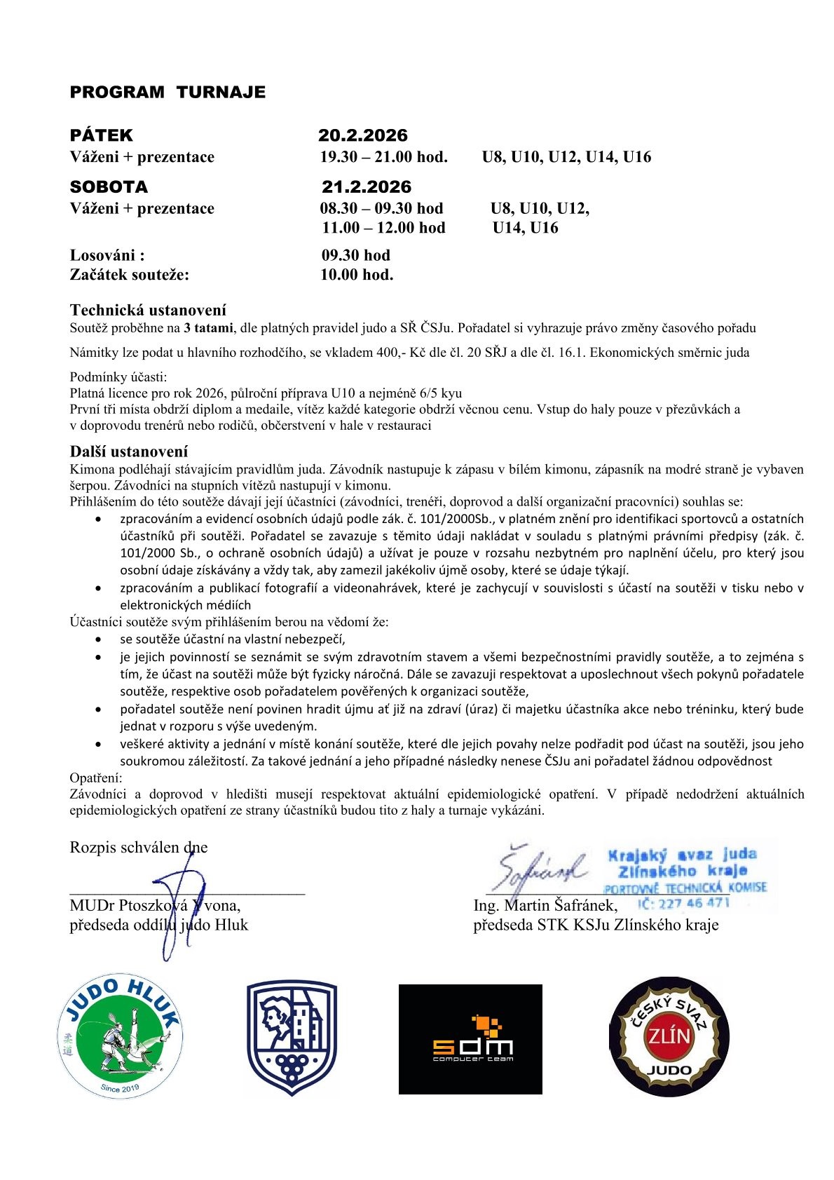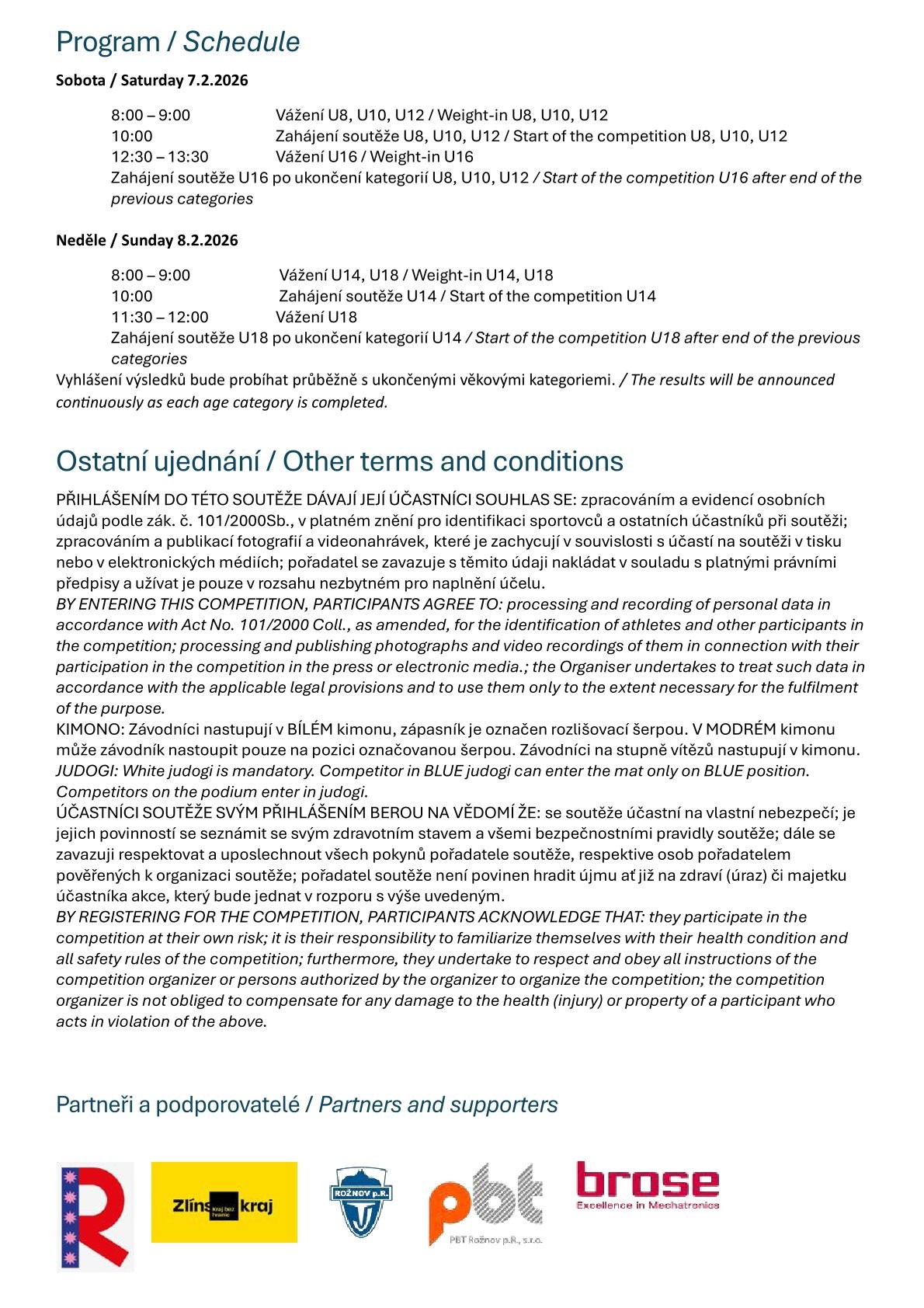 Nominovaní závodníci se přihlašují elektronicky ZDE a to nejpozději do 19. 2. 2026 do 19:00 hod. Nepřihlášení závodníci nebudou mít možnost startu.