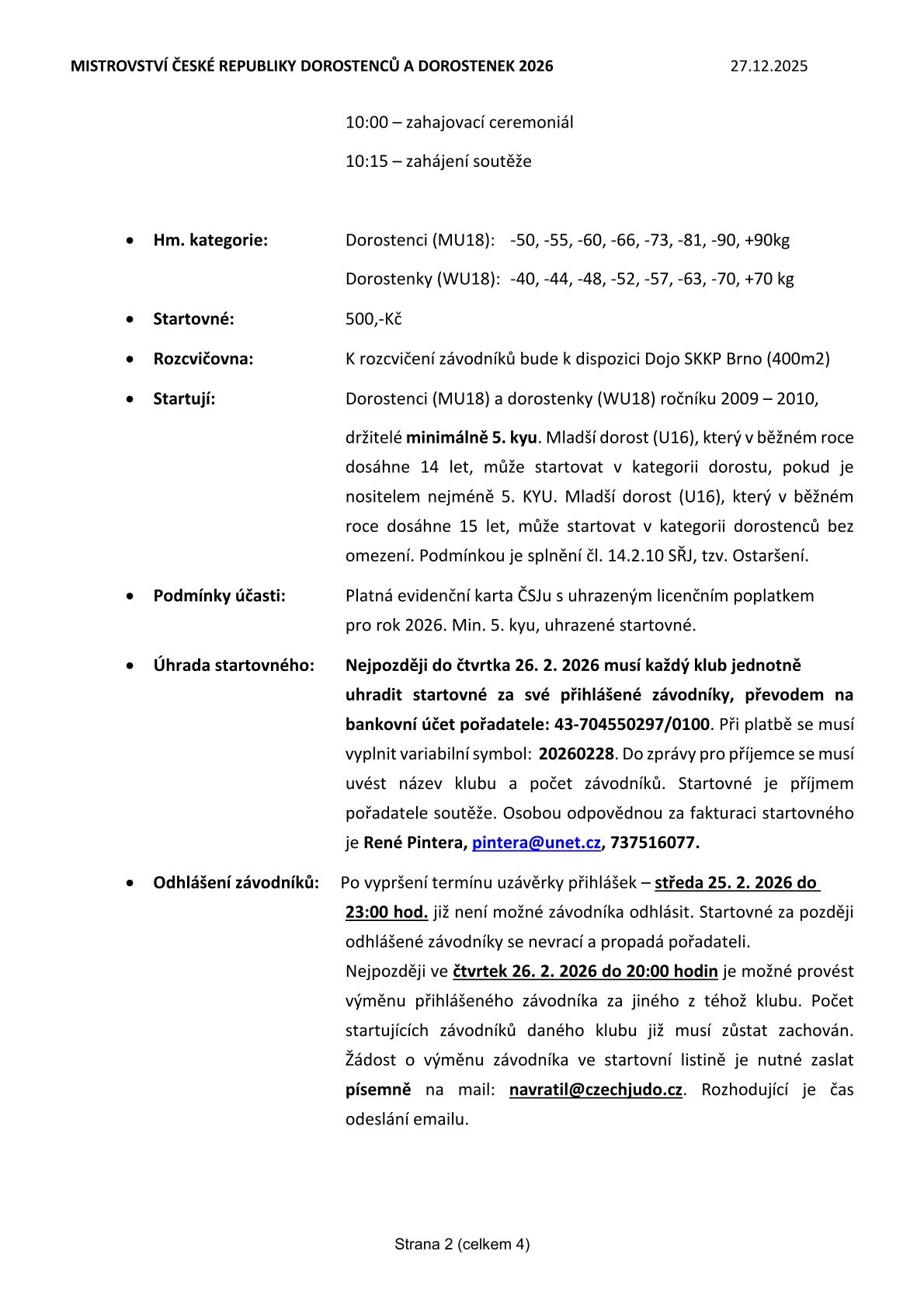 MČR U18 Brno, 28. 2. 2026